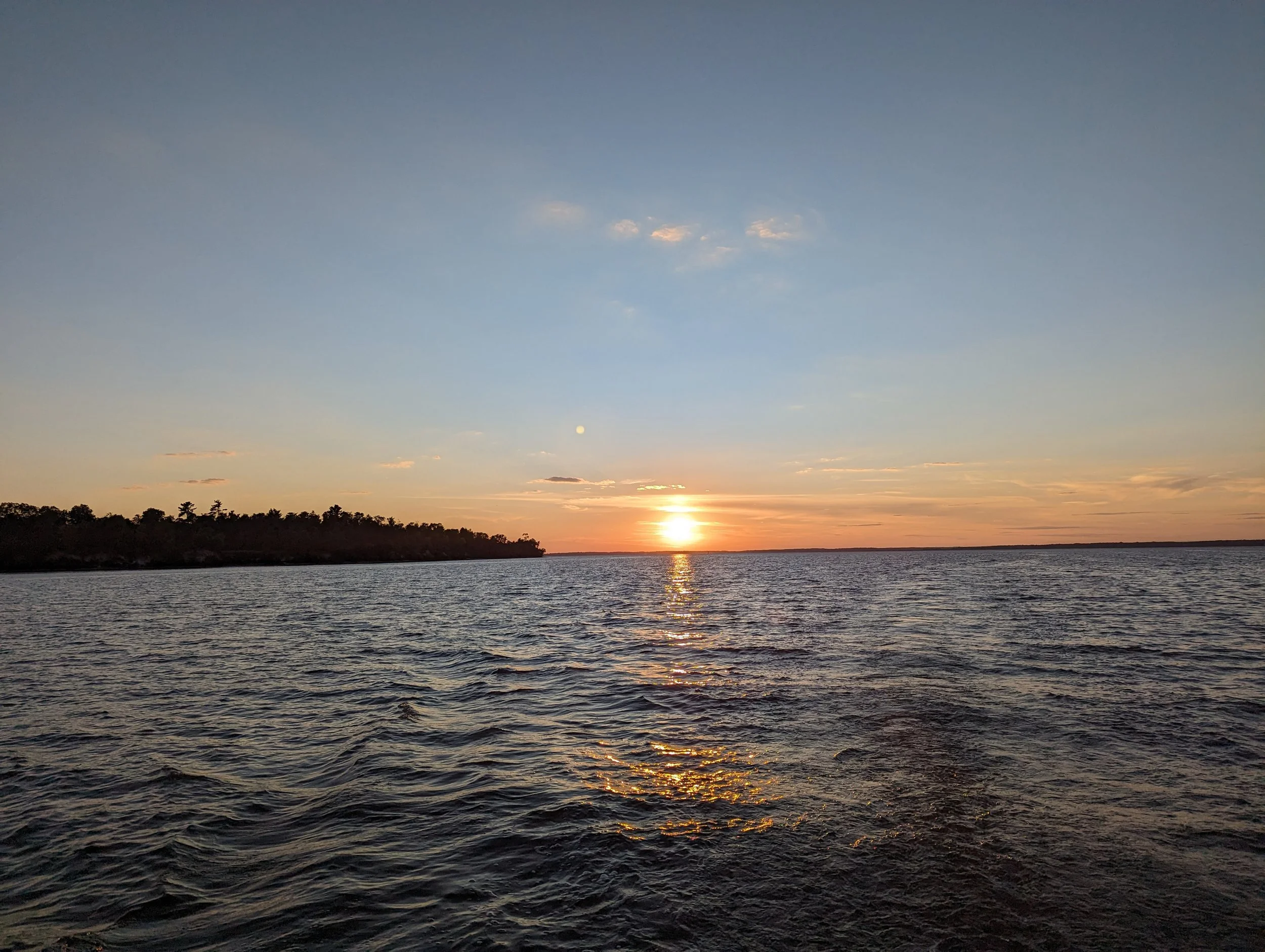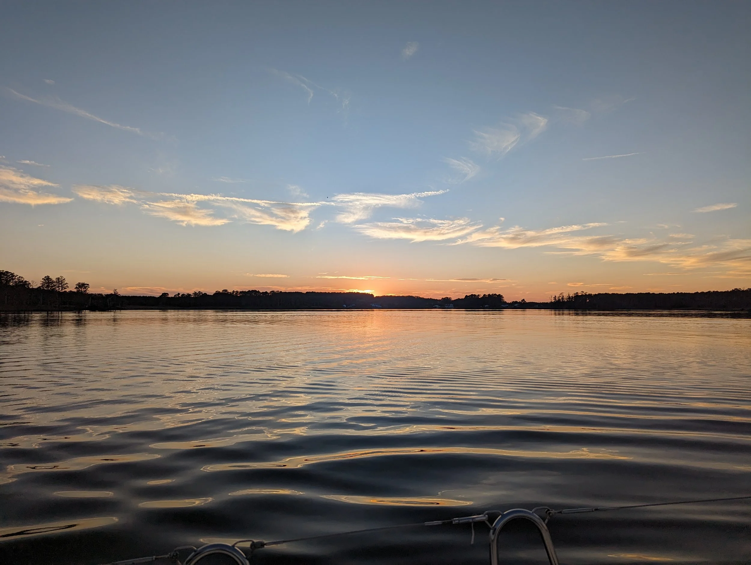 We were coming around the land that juts out to protect from wind, but does start to obscure the sunset view. Not that this is bad.