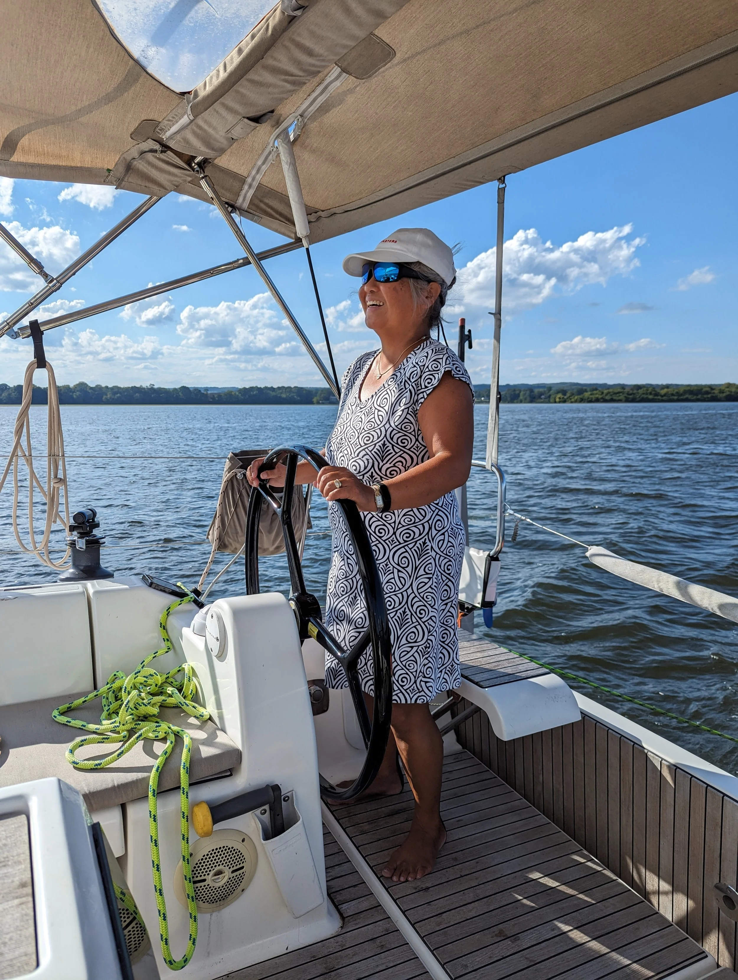 Wed Sept 13 Had a great weather window to get to Annapolis to have our autopilot evaluated. Had morning appointments. PSA all sailors should get annual skin checks, we did today. And use sunscreen! Packed up provisions and clean clothes, got to Tidewater Marina by 1 ish. Laz ran to Conowingo Gas and lo and behold they had the correct hose and fitting for baji-naji‘s propane system! Laz put it together, checked for leaks, tightened a few things when a small leak was detected and we are cooking with gas! Yup, literally. Off the docks at 3ish and headed for Still Pond. NE winds, fairly decent.
