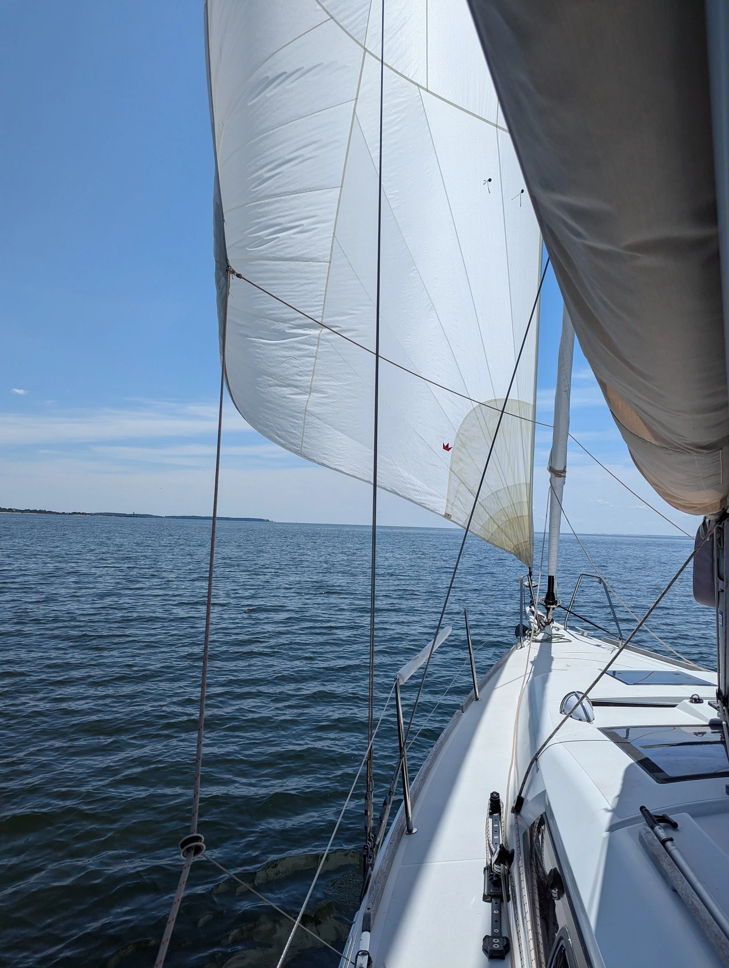Not much wind to start, but once it built to a steady 5+kts, we were able to put sails out with code-0 and sail down the Potomac. The current was with us, which was nice.