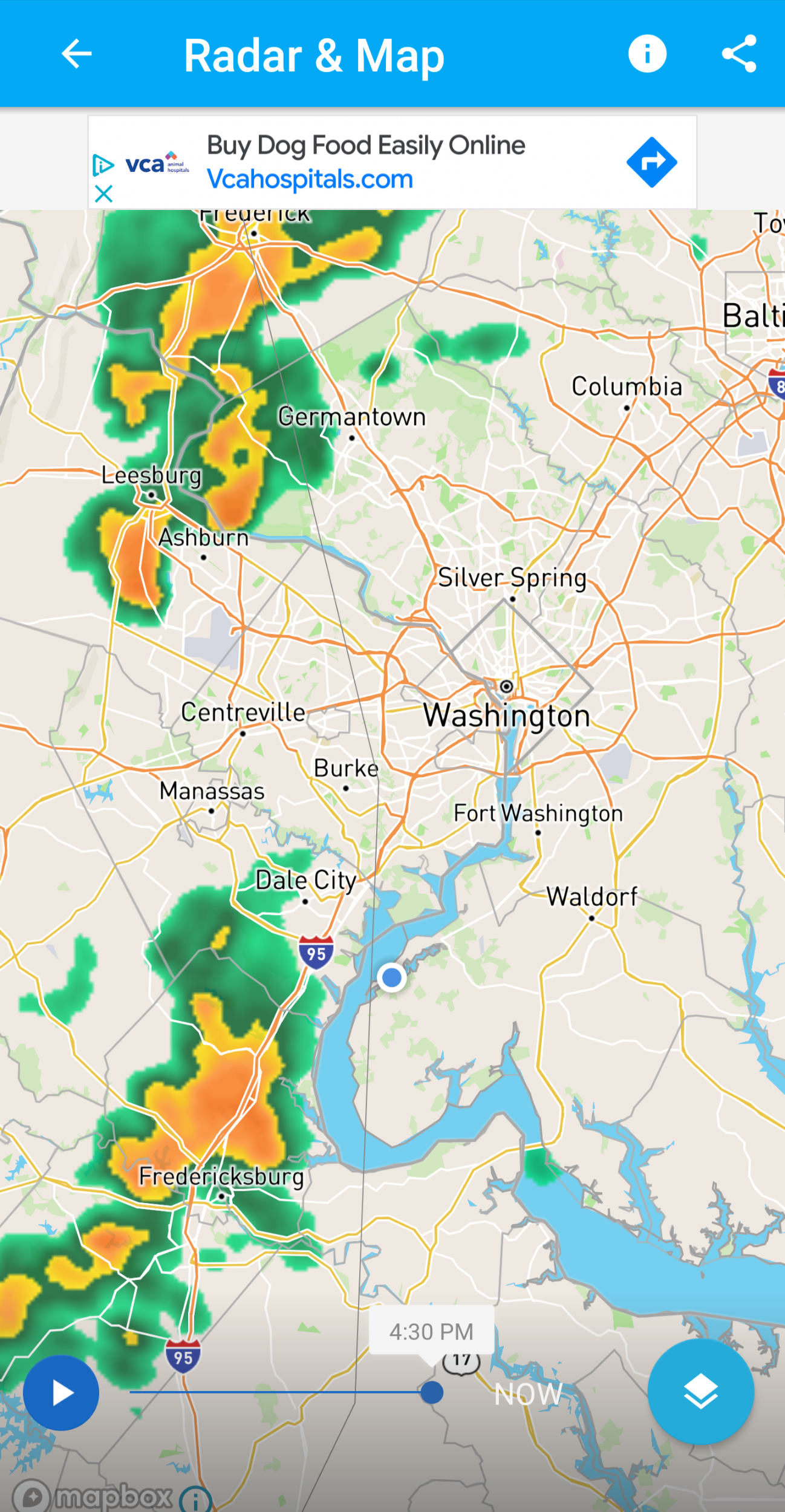 The blue dot was where we were in Mattawoman Creek when we saw the storm approach.