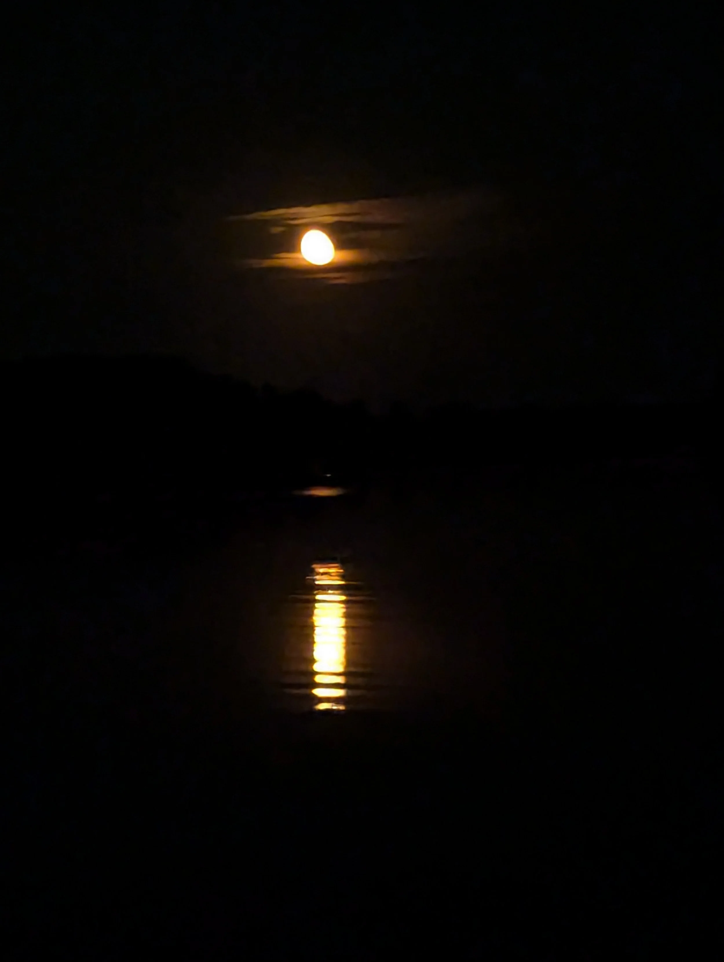 No sunset pictures but I did capture the almost full moon from our dock. When the day was done we realized that it never rained!
