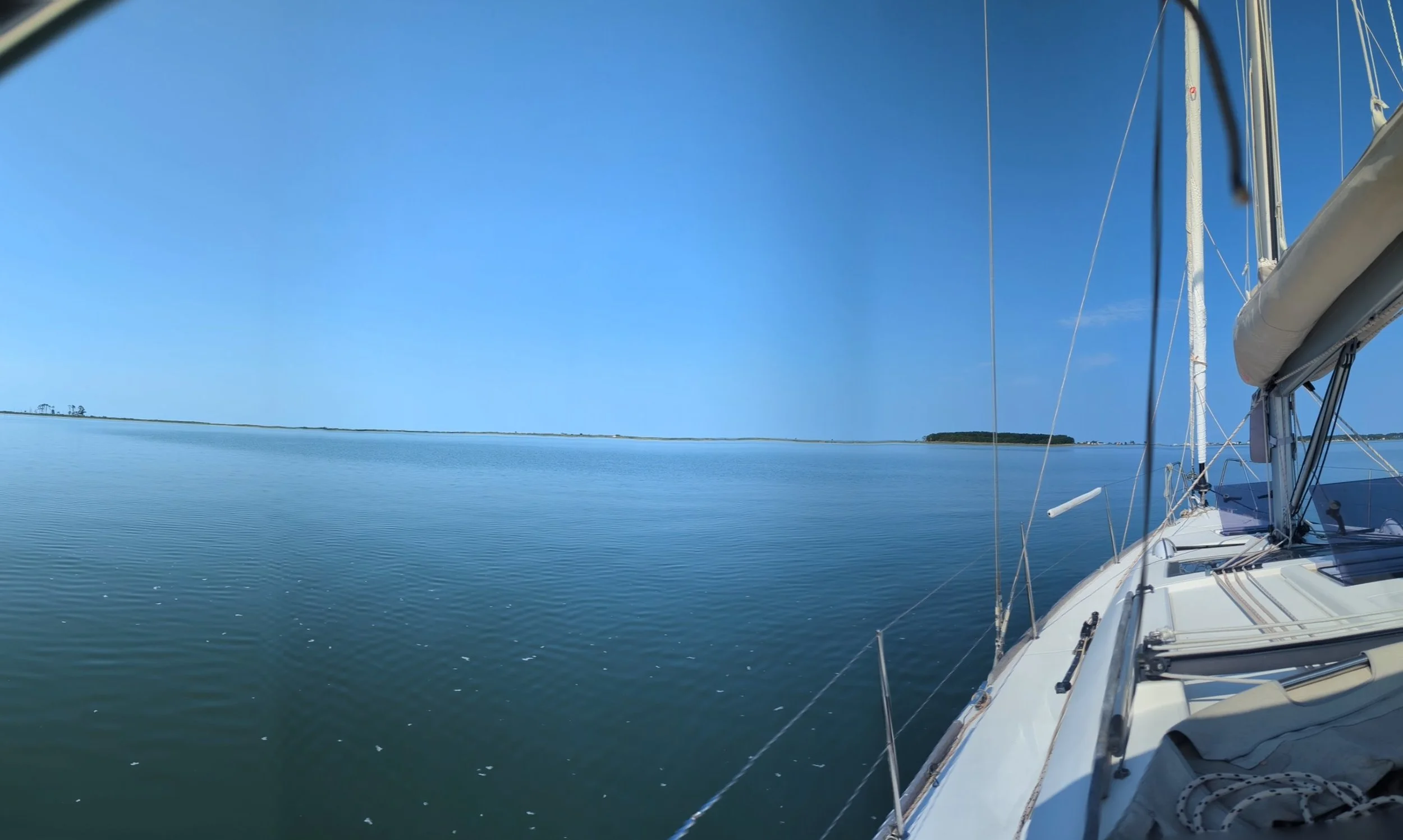 There was not much wind to start, we waited for 5+ kts to put up the sails. Passed the bridge between the Hooper Islands.