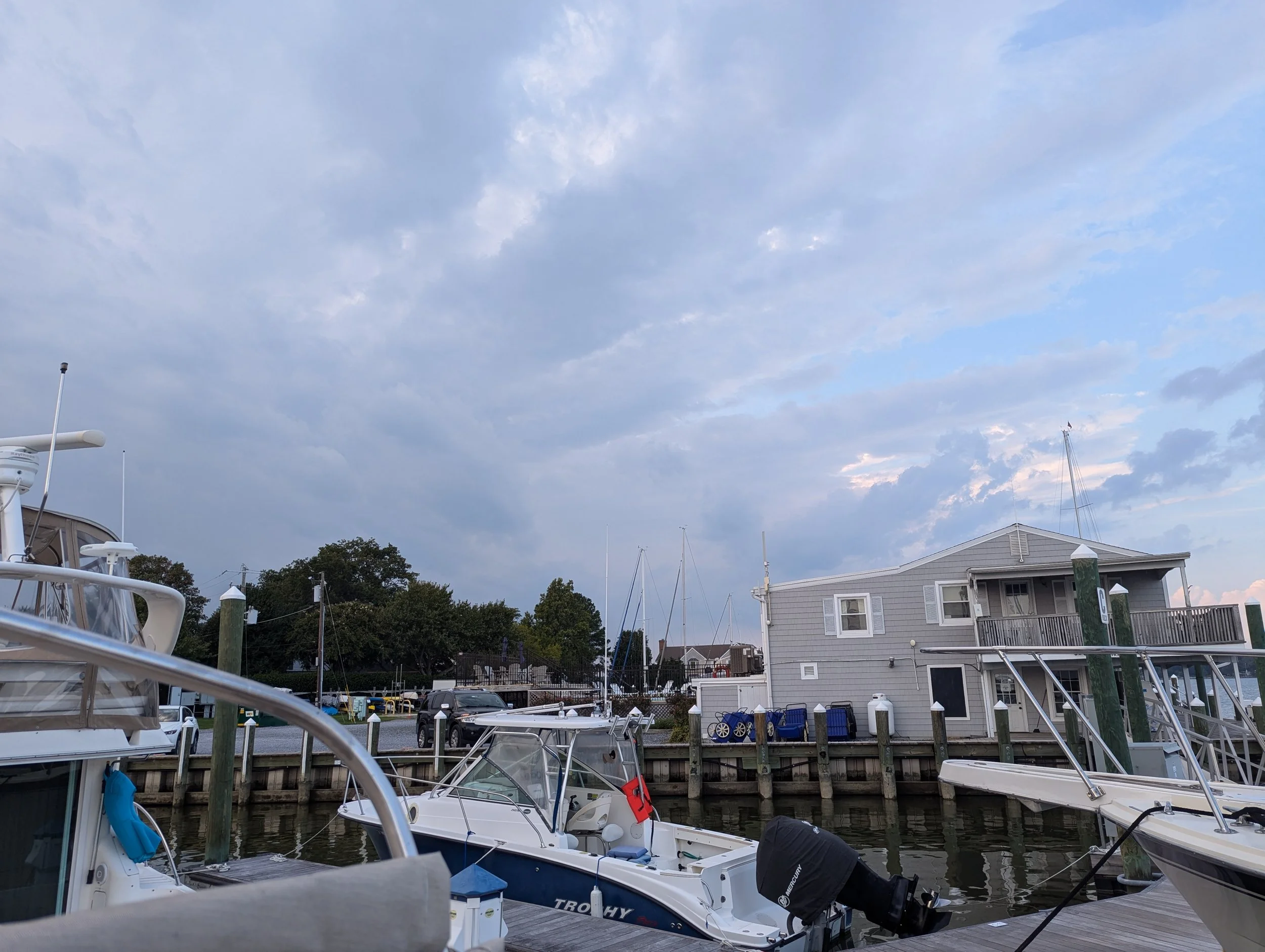 Took a short walk around the property, it is quite pretty. Called Ted, the driver, and he was happy to pick us up. He had a large group of 6 people that were looking for a place to eat, but everything was closing down at that point. We even checked with the restaurant that we just left to see if they would take a seating in the next 5 min, and their kitchen was closing down. I think they found somewhere to be, because Ted came right over and brought us back to Rock Hall Landing. The B-D’s are able to join us tomorrow and we decided to book the marina at Oyster Point, as Rock Hall Landing did not have room for Kaimana tomorrow.