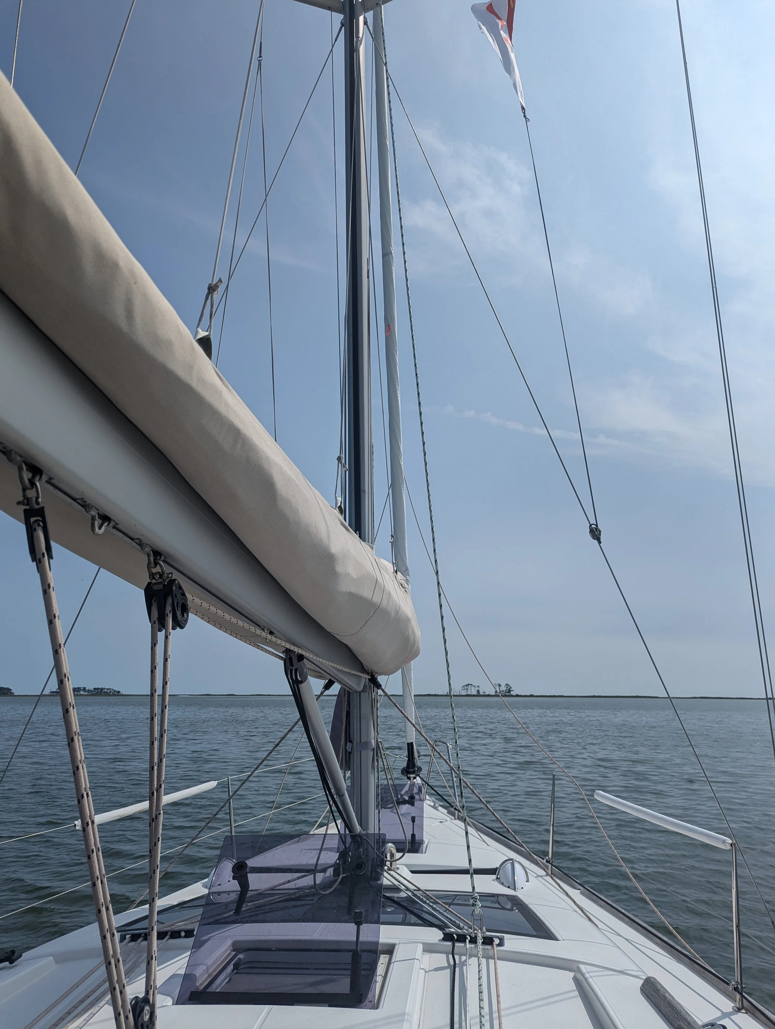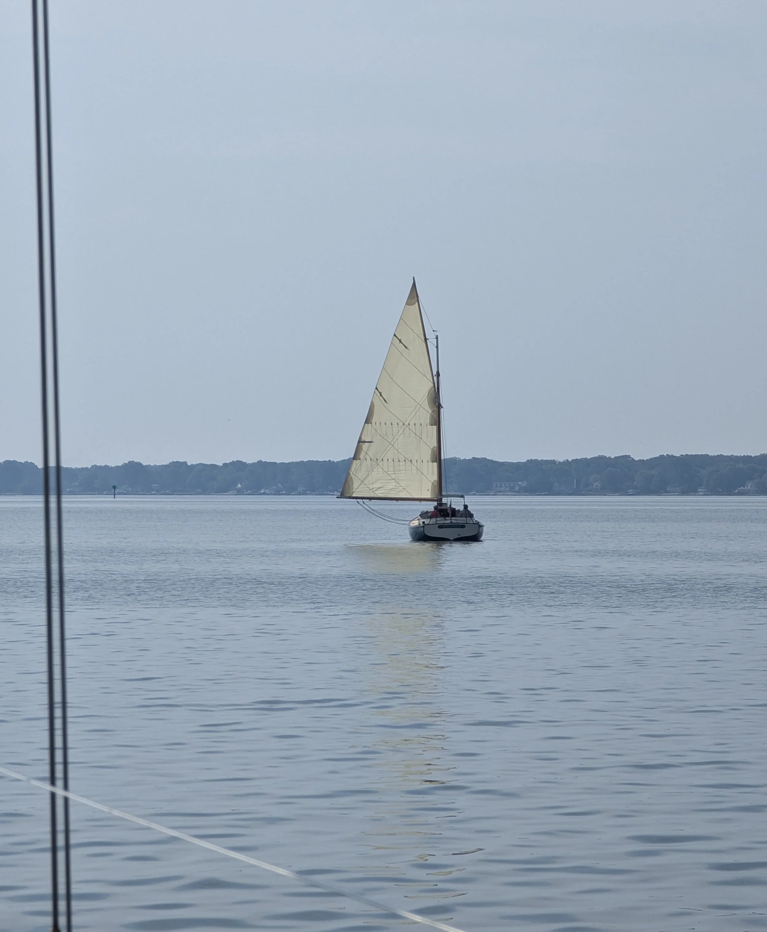 We sailed under the bridge and had to dance with a sailboat out of Annapolis who had only their main up. We were on starboard tack and technically had right of way, but I never assume other people know the rules of the road.