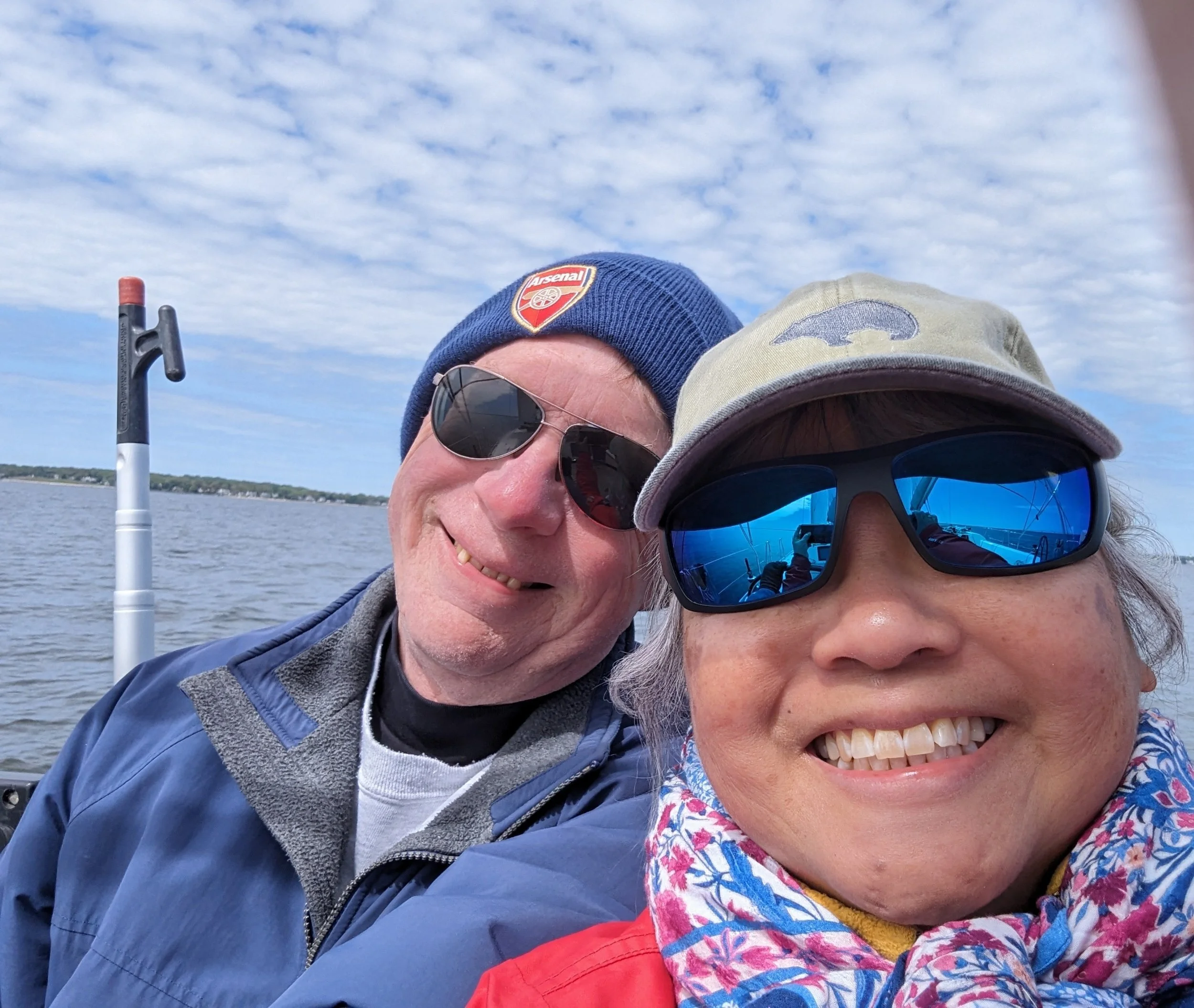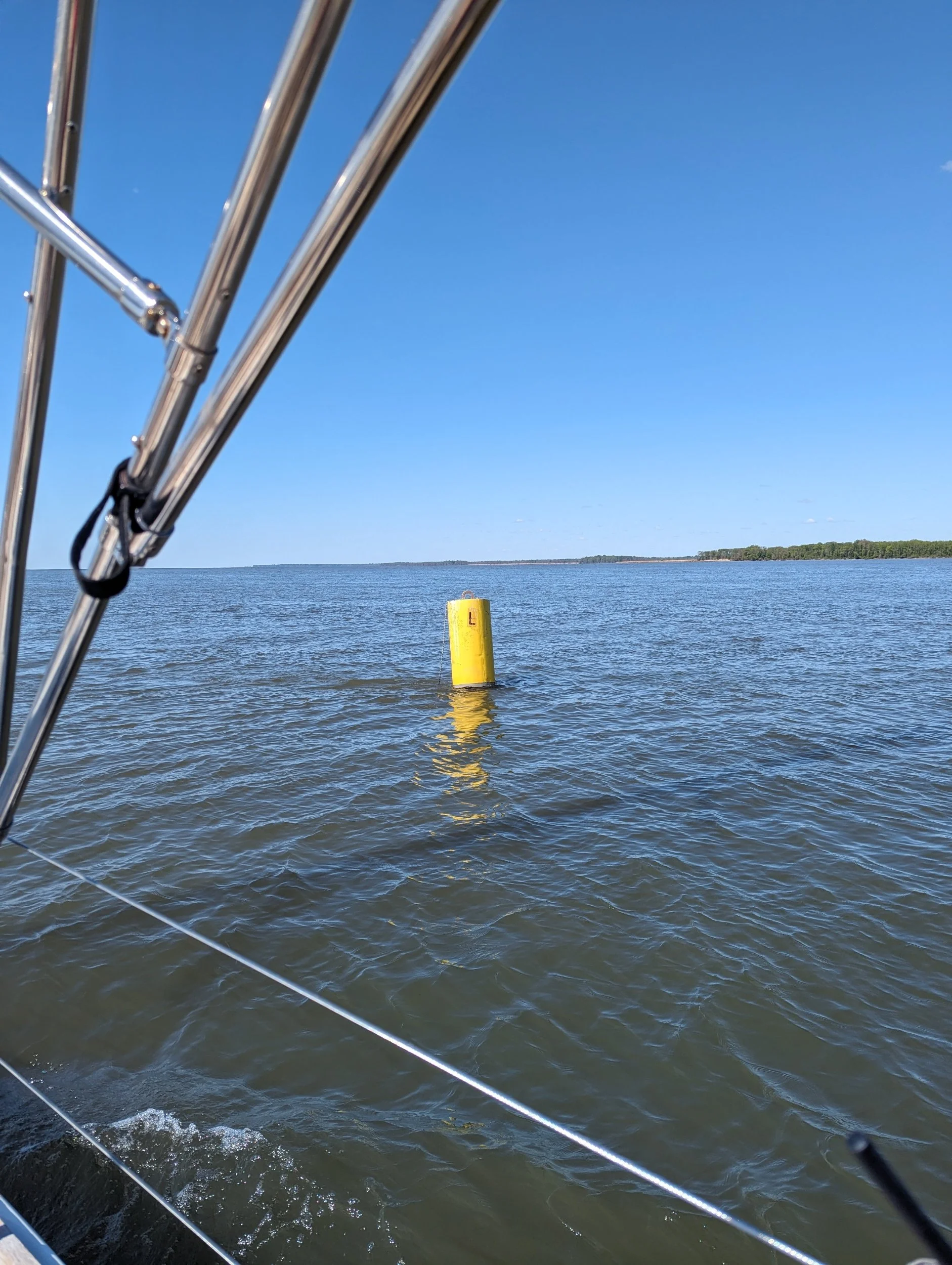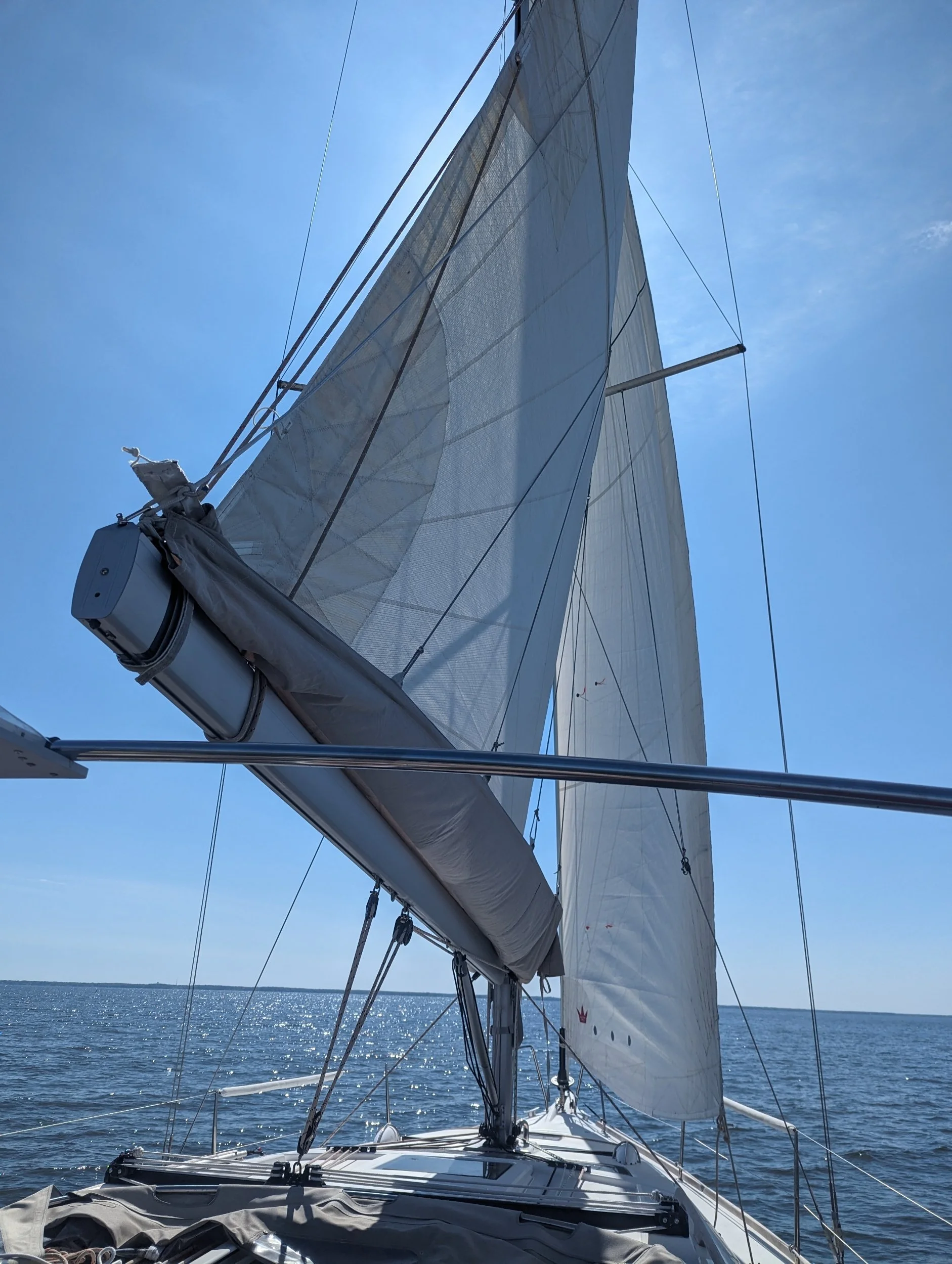 The wind picked up nicely to 12-13 it's, at one point steadily 15+ and we set up to reed, but it came back to 12+ so we left sails all the way up. It was a fantastic sail back once past Still Pond.