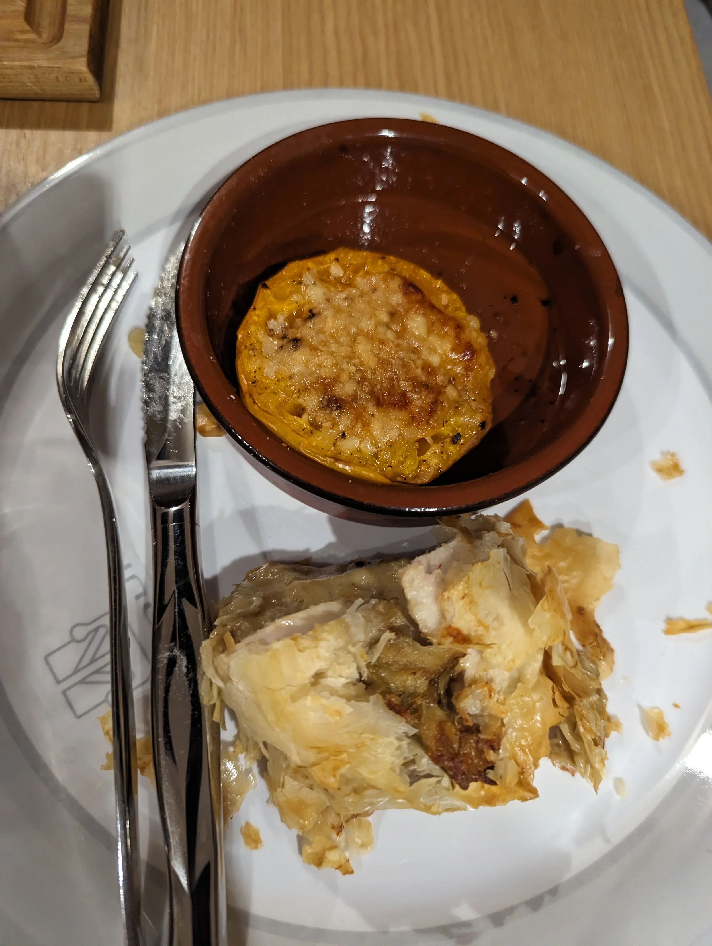 Laz had the baked shrimp which has leeks and a melted Turkish cheese. I got a taste of the leeks and cheese…yummy!