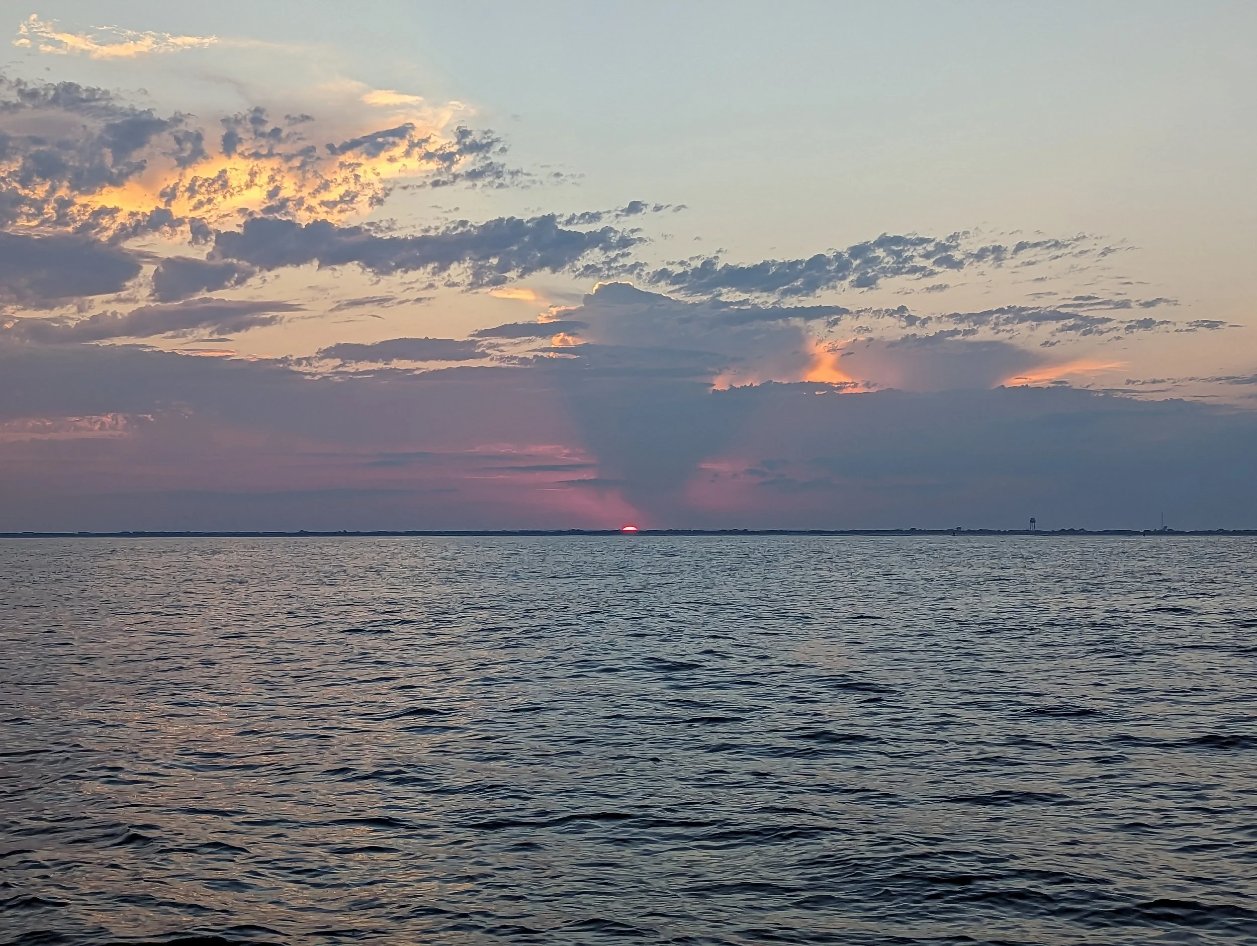 By the time we walked back to the YC and got on the launch, the sun had set. View from the launch. Off to Atlantic Highlands tomorrow.