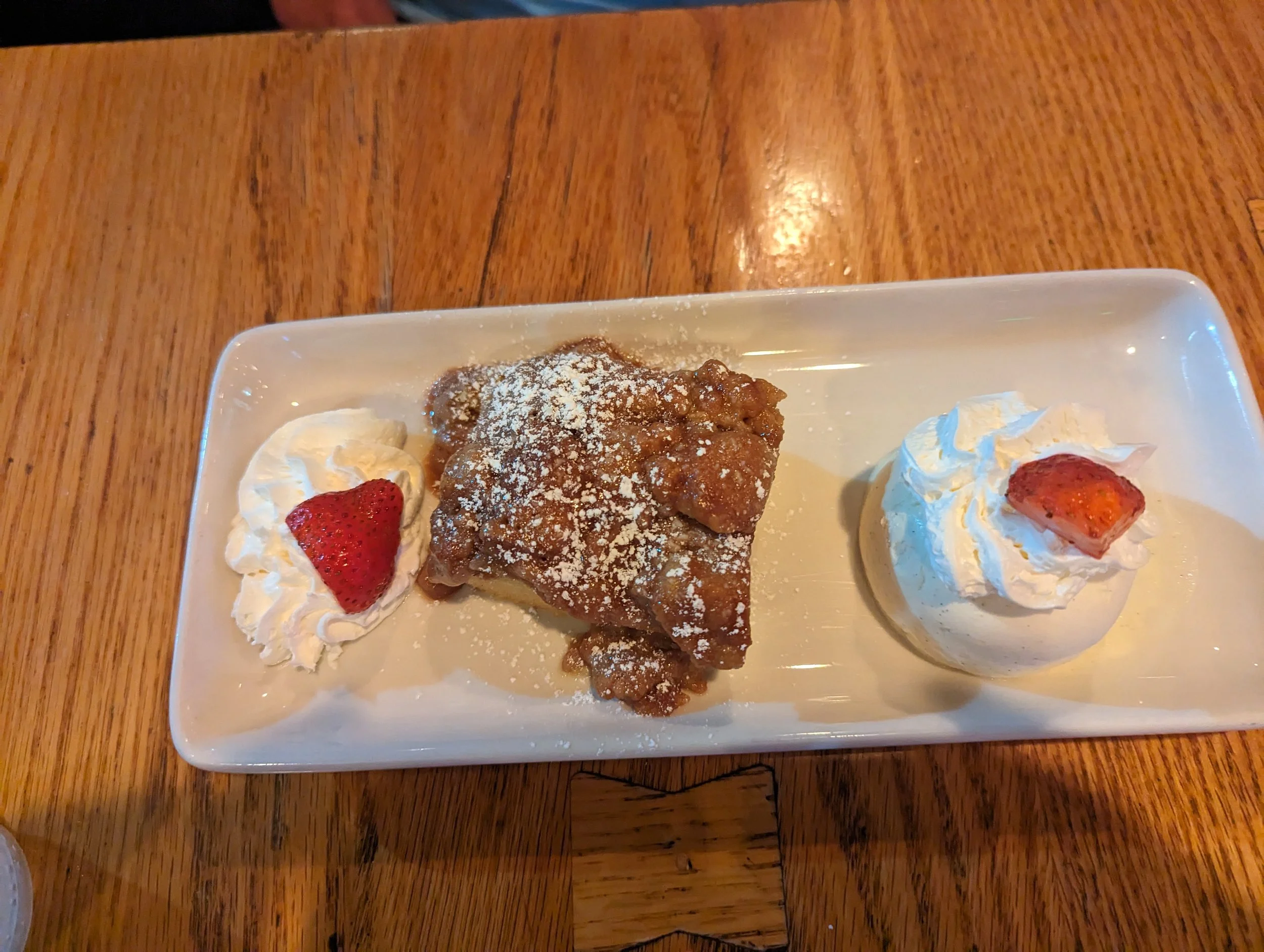 I had the seafood pasta, scallops, shrimp and crabmeat with a parmesan cream sauce. Most of this came home with us as well. Generous portions! The waitress did a great job up selling dessert so there is also a vanilla caramel cheesecake slice in the fridge. No will power when tired! Off to bed not long after dinner. Up early tomorrow to catch the tide up Delaware Bay