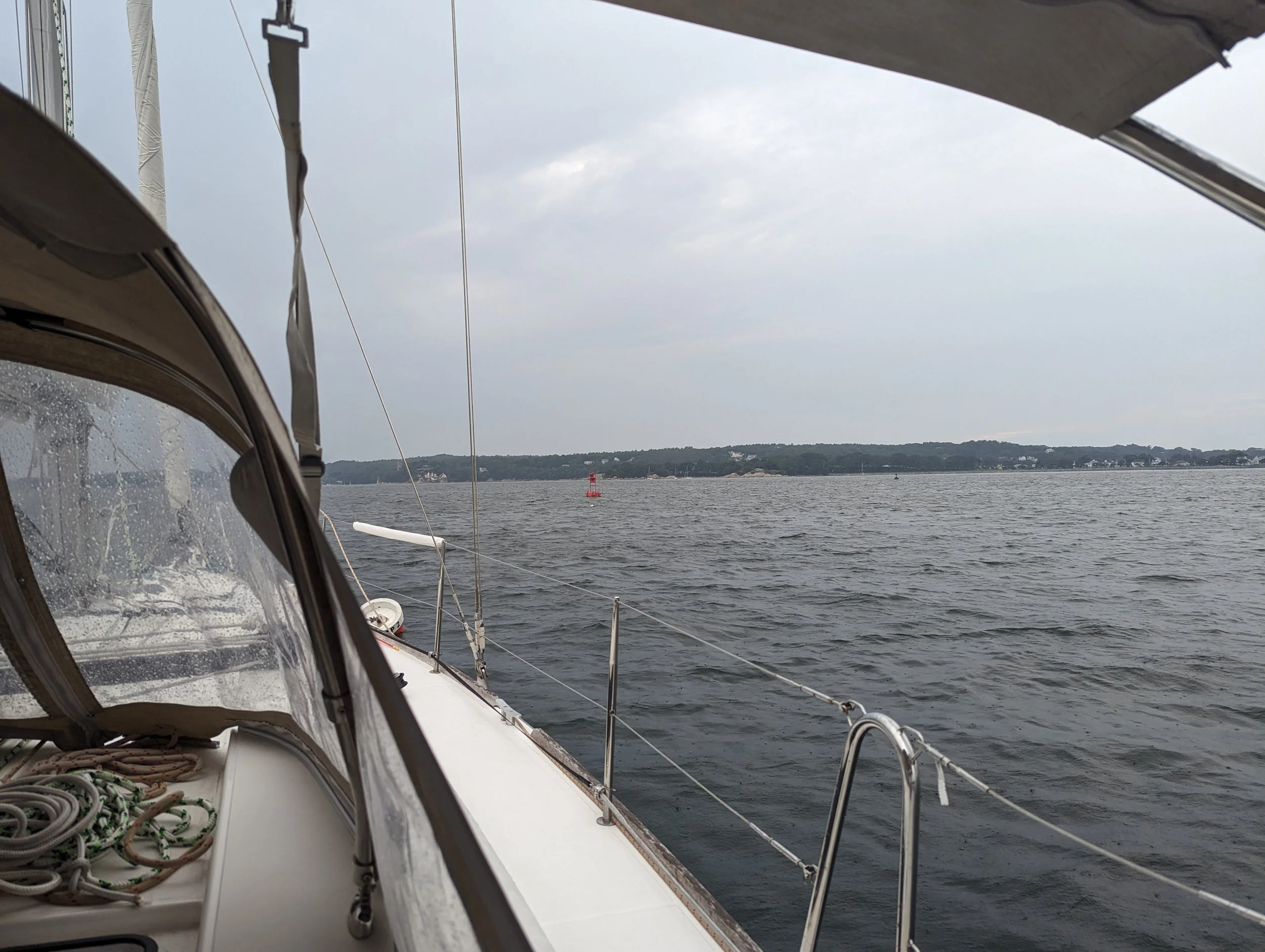 We put up sail as soon as we passed the last green for the CCC. Light winds ~5kts from the NE but always good to sail. Serenity and Freya both hailed is looking for advice on sailing since they saw we were moving nicely with good sail trim