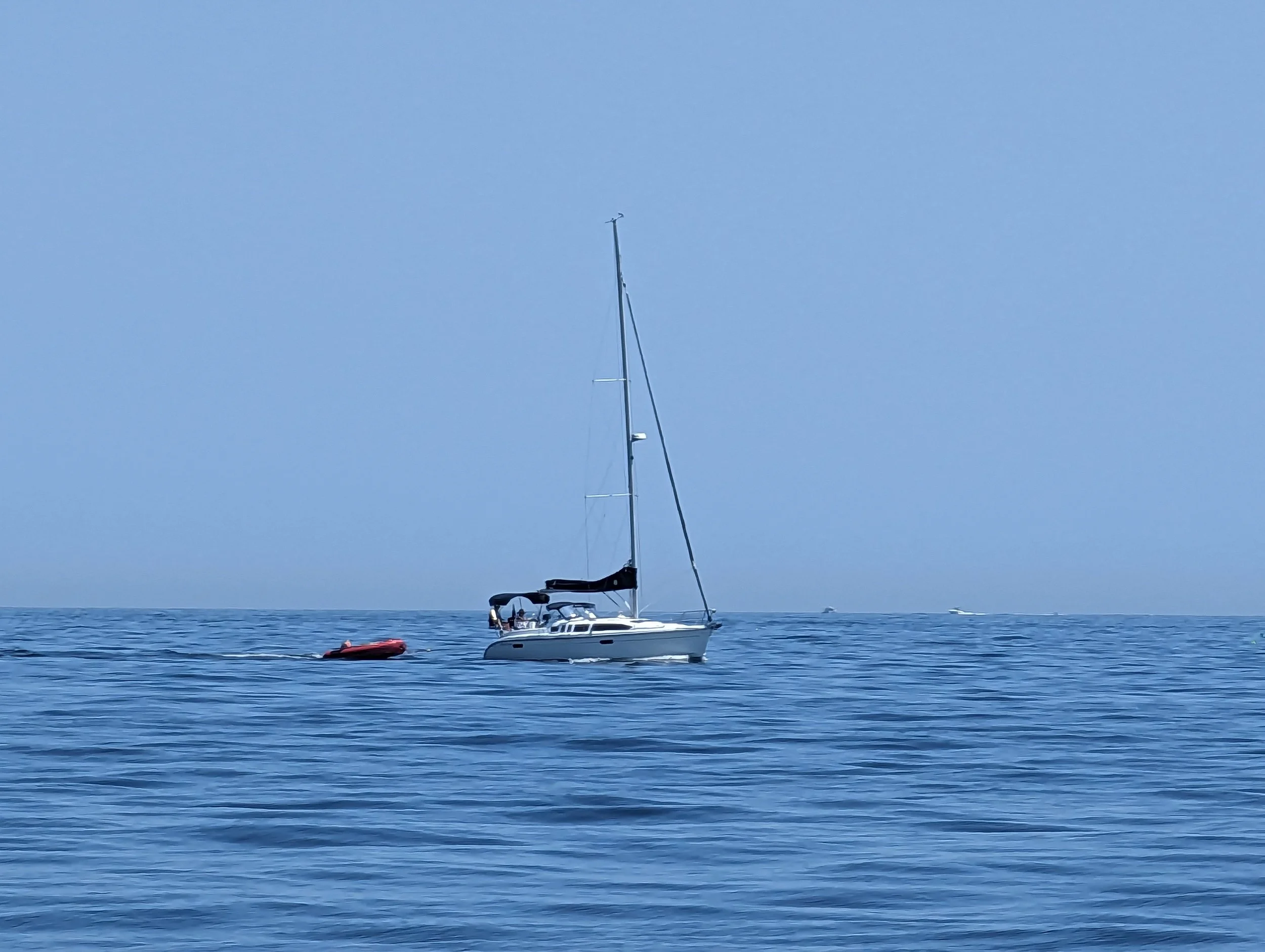And then you have For Pete's Sake going wing behind us. She managed to keep it steady with the wake and waves so I am guessing she is a larger vessel than ours.