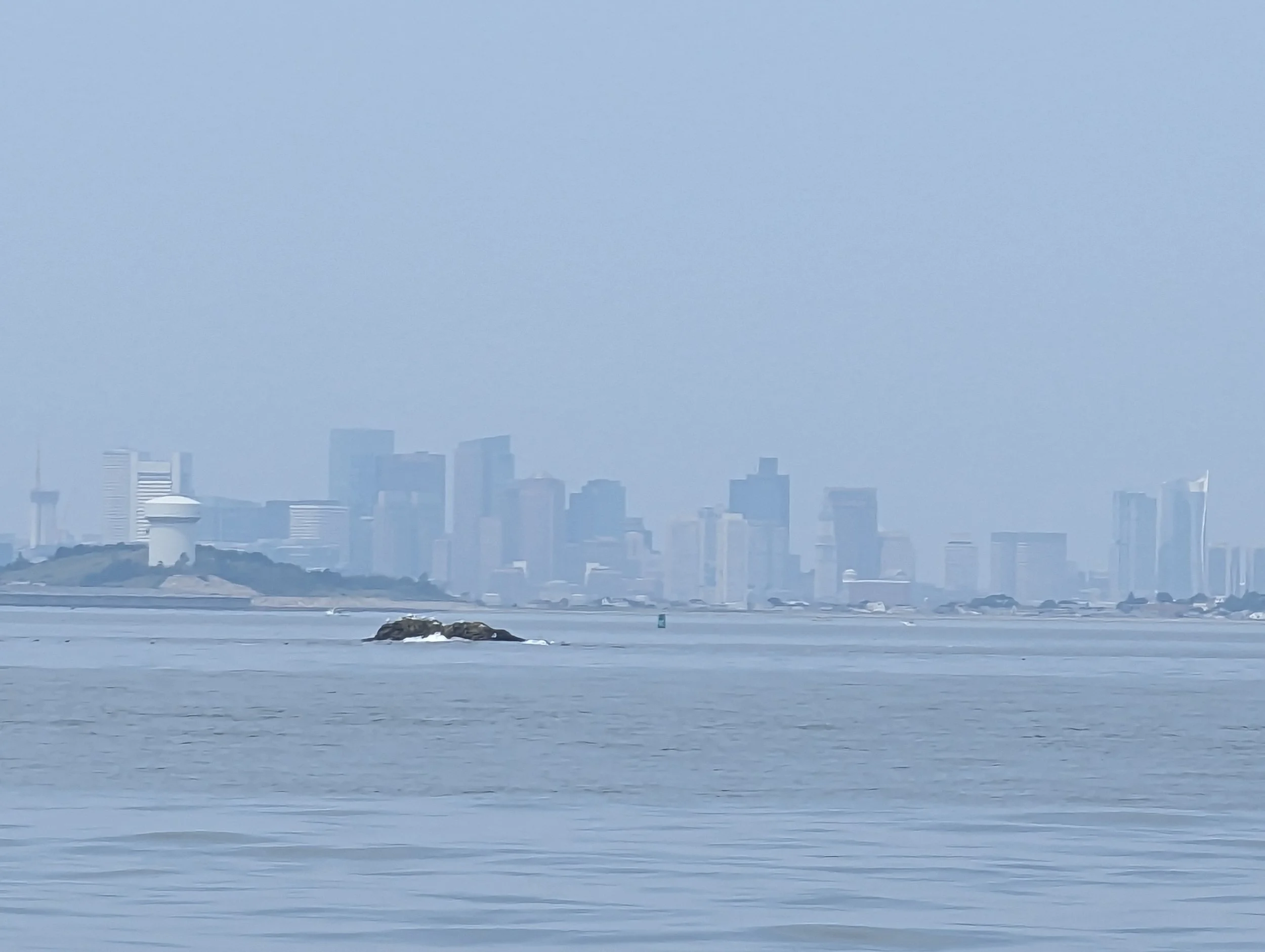 Looking back towards town. The boat wake at this location is more pronounced, as the No Wake sign is just about even with our stern. It was rocky enough to tip over my water bottle and anything not secured. Glad we are going back to Inner Harbor tomorrow night.