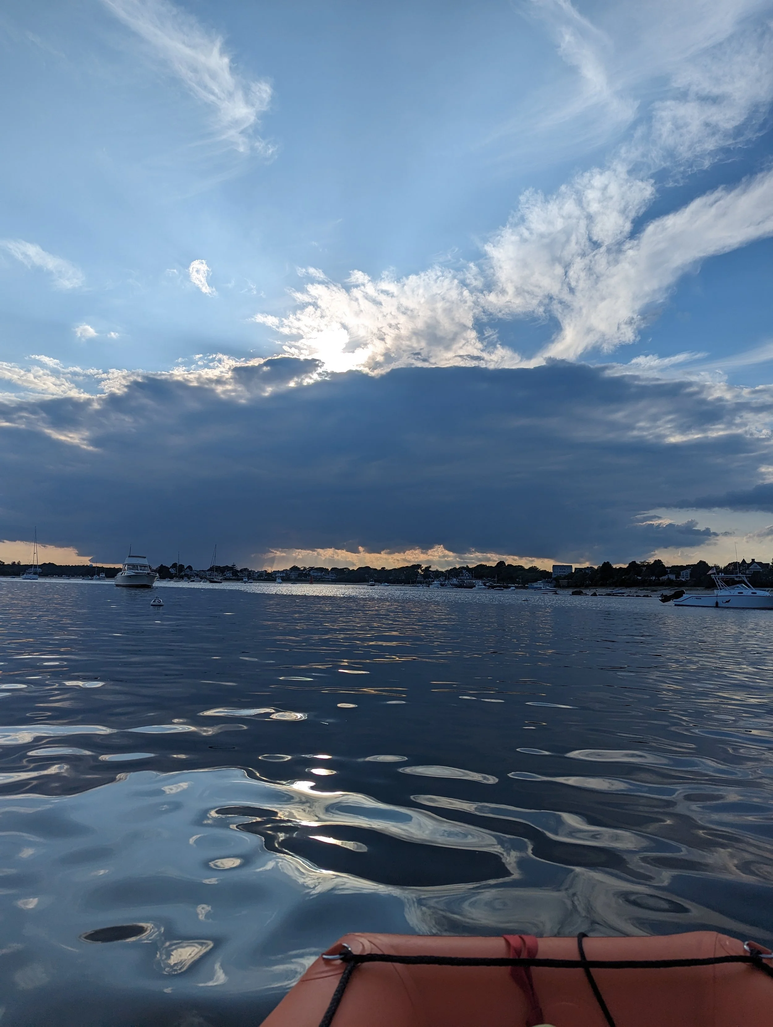 Storm clouds rolling in. The pumpout boat came out to us around 5:30p, before the weather was due to turn.