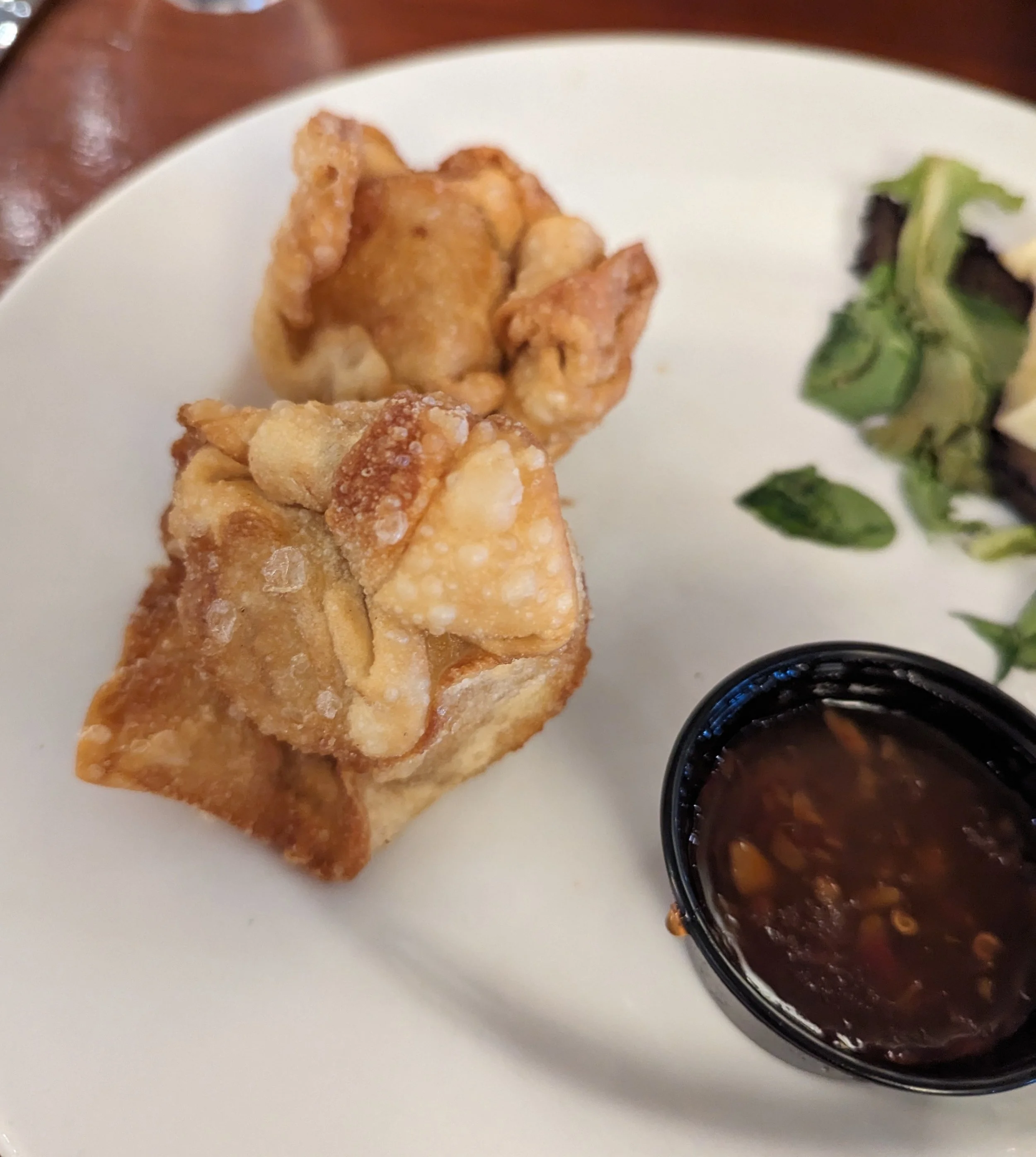 Had dinner at East Bay Grill. I enjoyed a summer strawberry salad with shrimp and Laz had swordfish. Generous portions so took some home. Seriously, the crab and lobster rangoon were huge.